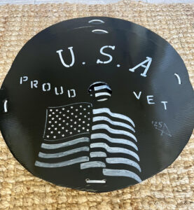 Personalized wheel covers for Mike, former Monroe HS graduate